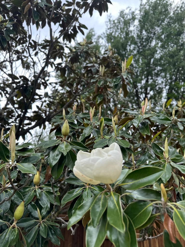 La primera flor de la magnolia cuenta una historia completa de cuidado, tiempo y maduración. La flor abierta aparece rodeada de hojas firmes, densas, bien formadas, y de bulbos todavía cerrados que tienen vida próxima a manifestarse. Cada elemento de la imagen evidencia una realidad: Dios sostuvo la vida de este árbol, el crecimiento ha seguido su curso, y el fruto visible ha llegado en el momento dispuesto por Dios.